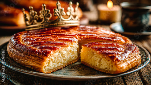 Fototapeta premium Galette des rois à la frangipane avec couronne