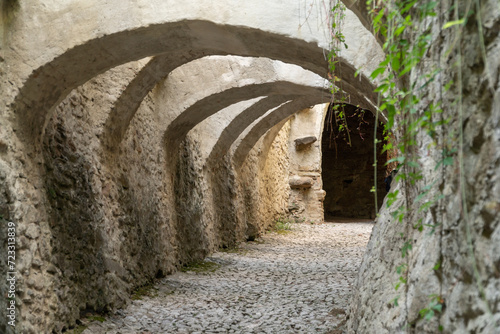 © Volodymyr Herasymov, Fototapeta premium Gallery behind the walls of Biertan fortified saxon church, Unesco World Heritage site, in Biertan village, Transylvania, Romania, Europe. Romania