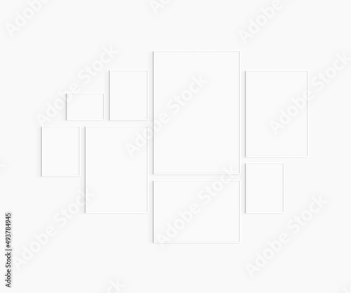 Fototapeta premium Gallery wall mockup. Set of 8 white frames. Gallery wall frame mockup. White...