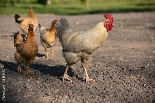 © Santa001, Fototapeta premium Gallinas y gallos juntos a la par