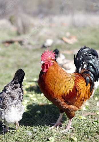 © planeta11, Fototapeta premium gallo en la granja libre en el campo
