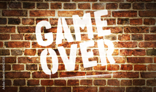 © PerlaStudio, Fototapeta premium Game over symbol spray painted on the brick wall