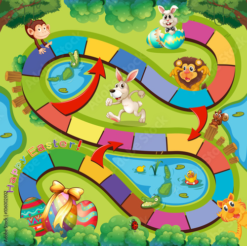 © GraphicsRF, Obraz premium Game template with wild animals and easter eggs
