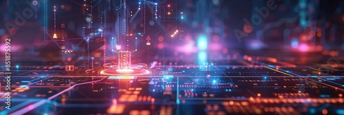 © Bilas AI, Obraz premium Gamification, a futuristic abstract background with holographic grids and quest icons, highlighting goal-oriented