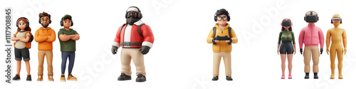 © Totomonk, Naklejka premium Gaming characters in various outfits, showcasing diversity and fun, isolated on transparent background.