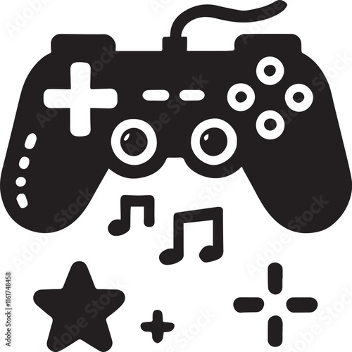 © Silhouette Stock 10., Obraz premium Gaming controller vector icon, Gaming controller vector illustration, Gaming controller silhouette vector black and white