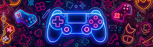 Obraz premium Gaming Icons and Neon Wallpaper Design Images.