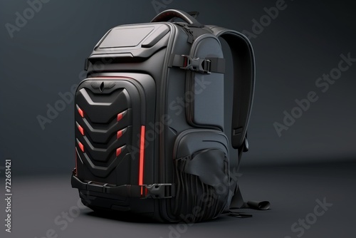 Naklejka premium Gaming Laptop Backpack, Featuring Tech-Savvy Elements, on a White Surface, Generative AI