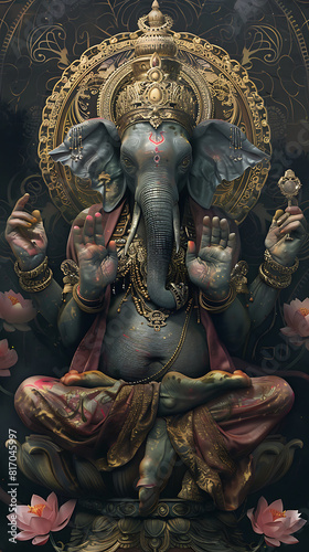 Fototapeta premium Ganesh wall art, The god of abundance is revered by the people, resulting in...