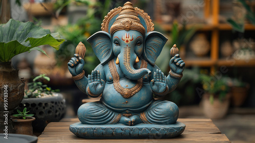 © tong2530, Fototapeta premium Ganesha eco-friendly colors, showcasing a beautifully crafted Ganesha idol painted with natural, eco-friendly colors, emphasizing sustainability and tradition