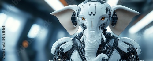 Fototapeta premium Ganesha in a futuristic setting, with robotic limbs and a mechanical trunk,...