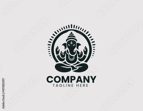 Fototapeta premium Ganesha Meditating Vector Logo Design, Lord Ganesha in Meditation Pose Vector Logo