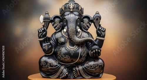 Fototapeta premium Ganesha Statue: Black and Gold Hindu Deity Symbolizing Wisdom, Prosperity,...