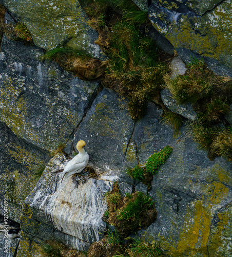 © Dreamnordno, Obraz premium Gannet Colony on Rocky Cliffs