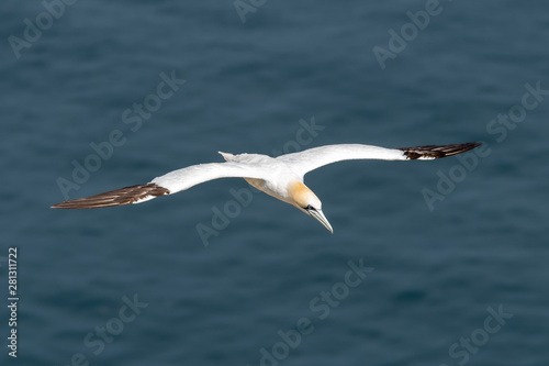 Obraz premium Gannet in Flight Over Bempton Cliffs East Yorkshire