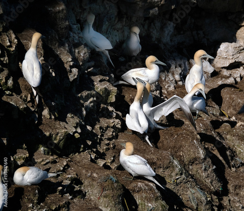 Obraz premium Gannet nesting colony on east coast of yorkshire, UK.