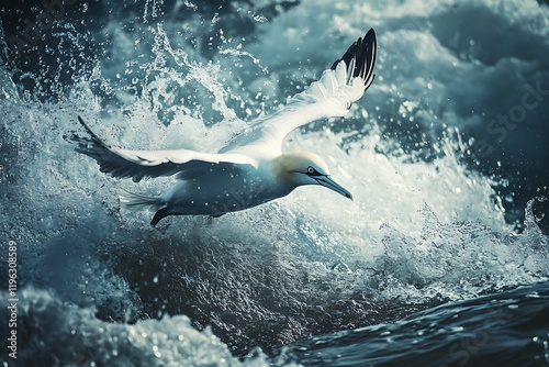 © Julaini, Obraz premium Gannet's Oceanic Dance: A Stunning Flight Through Turbulent Waters