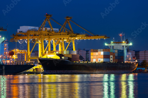 Fototapeta premium Gantry crane loading and unloading cargo container from cargo ship at port...