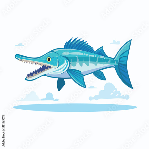 © cloud7days, Fototapeta premium Gar Fish Streamlined Vector Art with Flat Colors and Sharp Linework