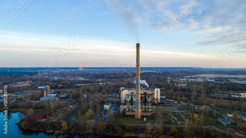 Obraz premium Garbage incineration plant. Waste incinerator plant with smoking smokestack....
