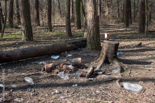 Obraz premium Garbage pollution in the forest
