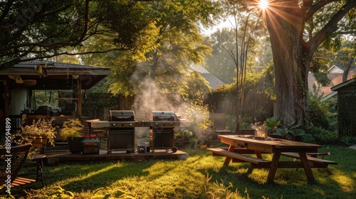 © victoriazarubina, Obraz premium Garden barbecue for the neighborhood