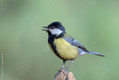 Obraz premium Garden bird Great tit, songbird sitting on the nice branch with beautiful...