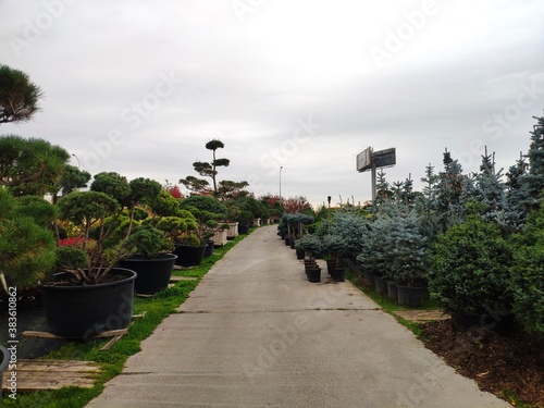 © Anna, Fototapeta premium Garden center. Garden shop. Sale of plants, trees and flowers. Variety of plants, trees and flowers