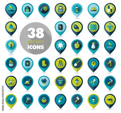 © nasik, Naklejka premium Garden Farm flat vector pin map icon