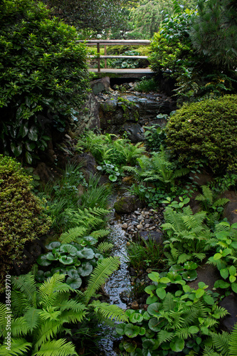 Obraz premium Garden landscape with streams and bridges