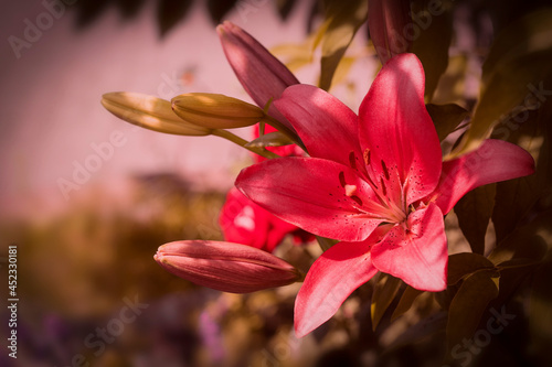Fototapeta premium Garden lily of the beauty of the garden in the photo. Floral wallpaper....