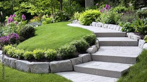 © MAKASIHMAS SIDNEY, Obraz premium Garden Pathway Steps, Lush Landscaping, Sunny Day. Possible Use Stock Photo