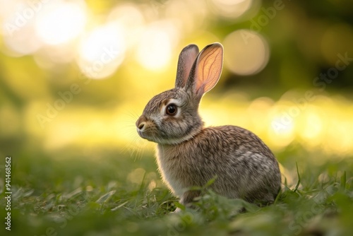 Fototapeta premium Garden rabbit in gray hues, softly lit, shallow depth of field.