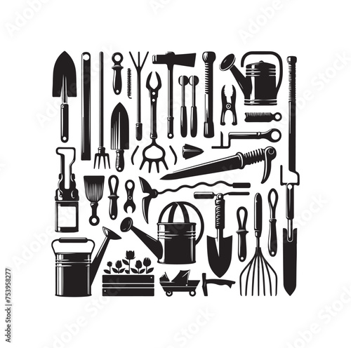 © MSTMIM, Obraz premium garden tools icon vector silhouette style illustration