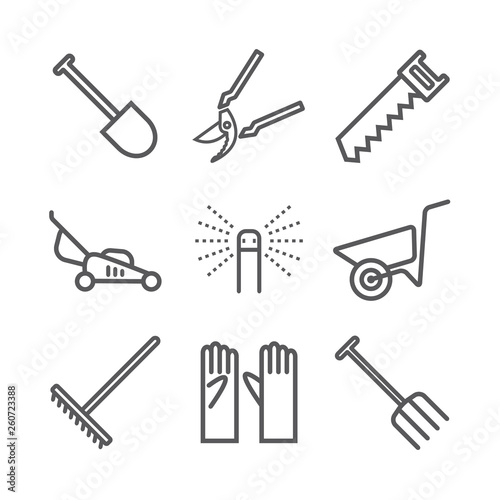 Obraz premium Garden tools line icons. Vector sign for web graphic.