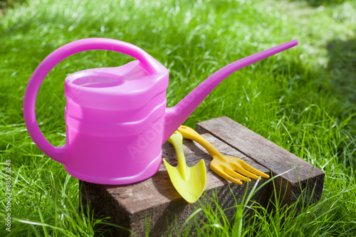 Fototapeta premium Garden tools on green grass