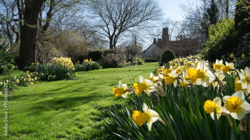 Obraz premium Garden view, Daffodils abound.