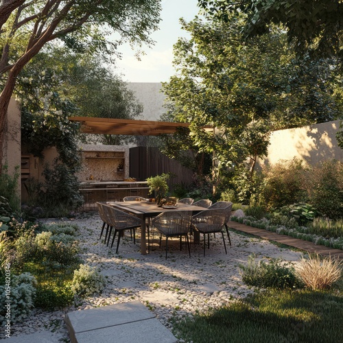 Obraz premium Garden with outdoor dining area
