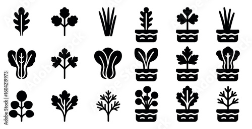 Fototapeta premium Gardening and nature solid icons set – filled, plant and greenery symbols