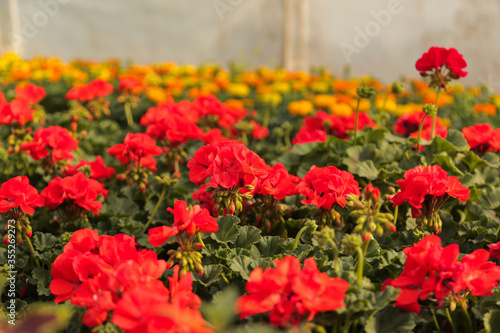 Fototapeta premium Gardening, flower nursery, shop, greenhouse geranium Pelargonium sp.