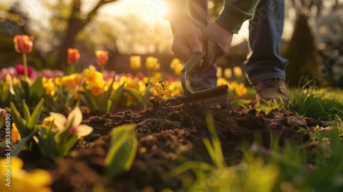 © Imsuniyah, Fototapeta premium Gardening in the Sunset