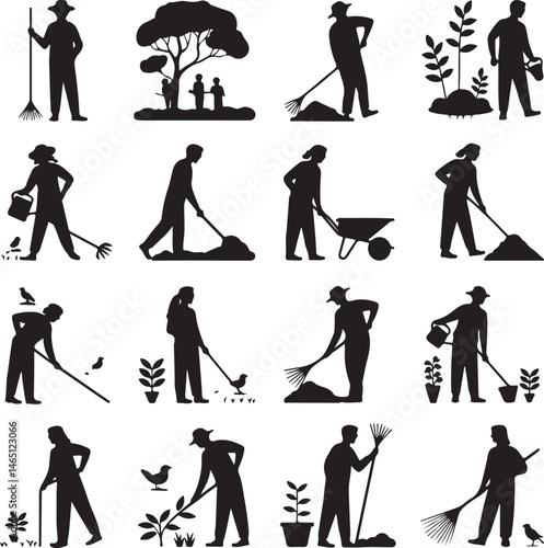 Obraz premium Gardening Silhouettes: Engaging silhouettes illustrating diverse gardening...