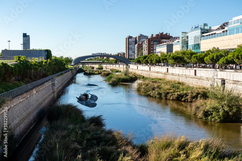 Obraz premium Gardens on the banks of the Manzanares River in the area known as Madrid Rio...