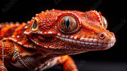 © Atittaya, Fototapeta premium Gargoyle gecko with red spots on black background extreme close-up
