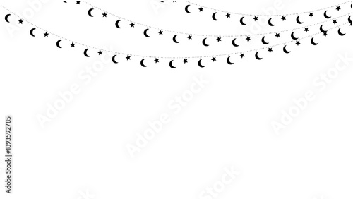 Naklejka premium Garland with hanging crescents and stars.