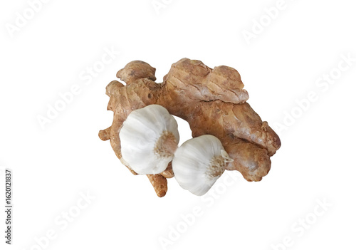 Fototapeta premium Garlic and ginger isolated on white background. The garlic in the recipes of...