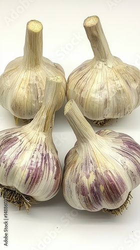 Obraz premium Garlic bulbs and cloves displayed on clean white background