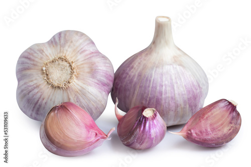 © eliosdnepr, Fototapeta premium Garlic clove and bulb isolated on white background.