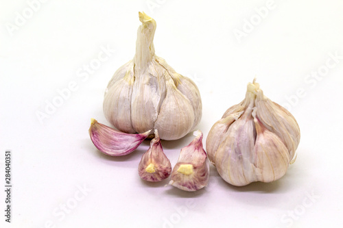 © K Stocker, Obraz premium Garlic on a white background, used for cooking, universal food