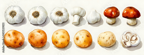 © SemangArt, Obraz premium Garlic, potato, mushroom food ingredients